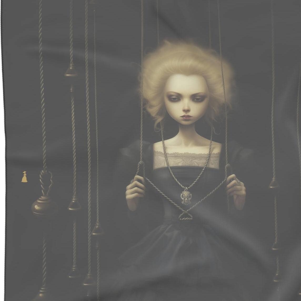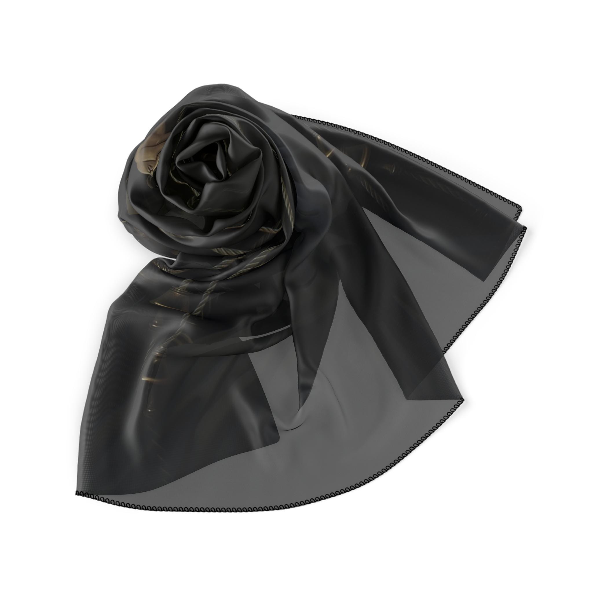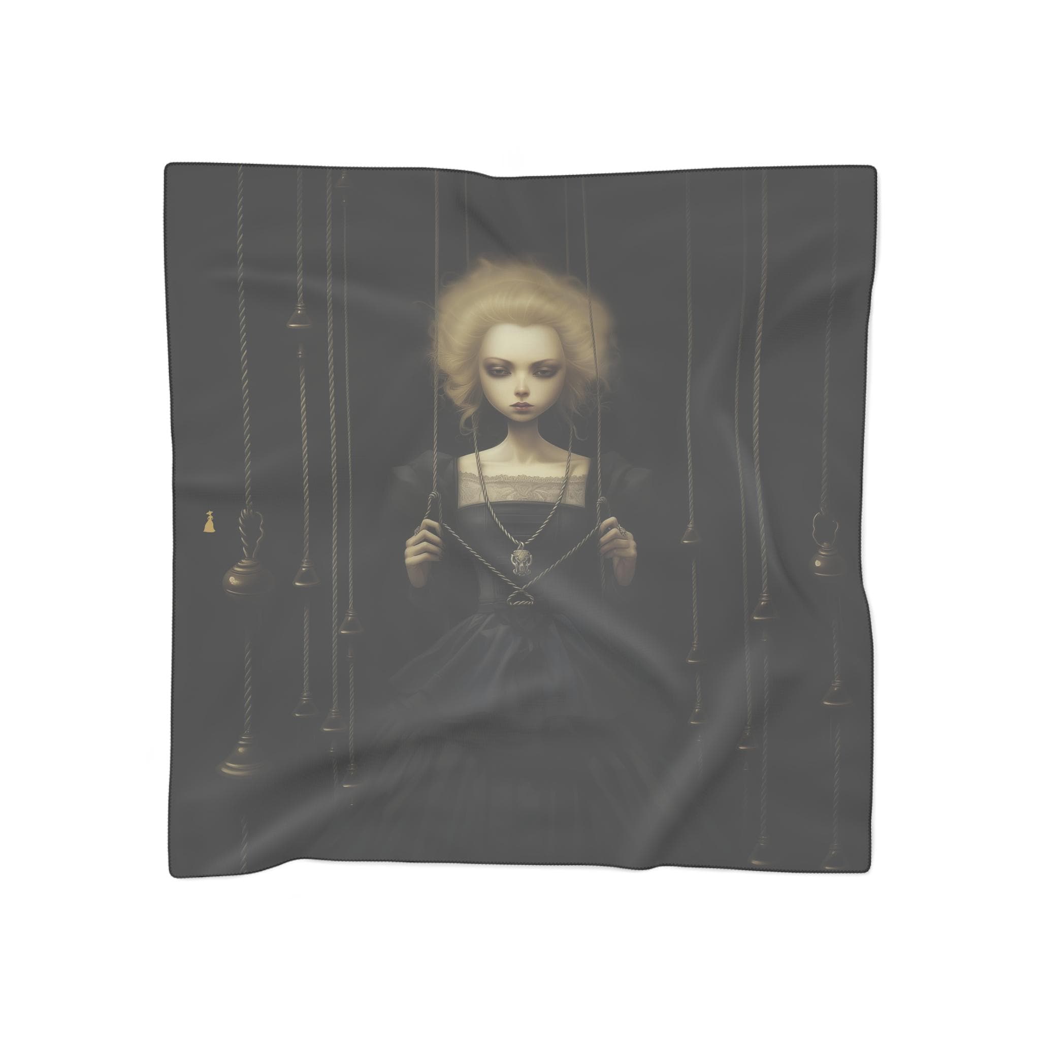 Embrace the mysteries of Elara's Scarf, a chiffon sheer scarf featuring our Noir Doll art print. This 25-inch by 25-inch scarf combines elements of elegance and fantasy, a statement piece for lovers of fashion. Crafted from lightweight poly chiffon, Elara's Scarf is soft perfect for styling. Outstanding quality print turns it into a head turning style accessory.