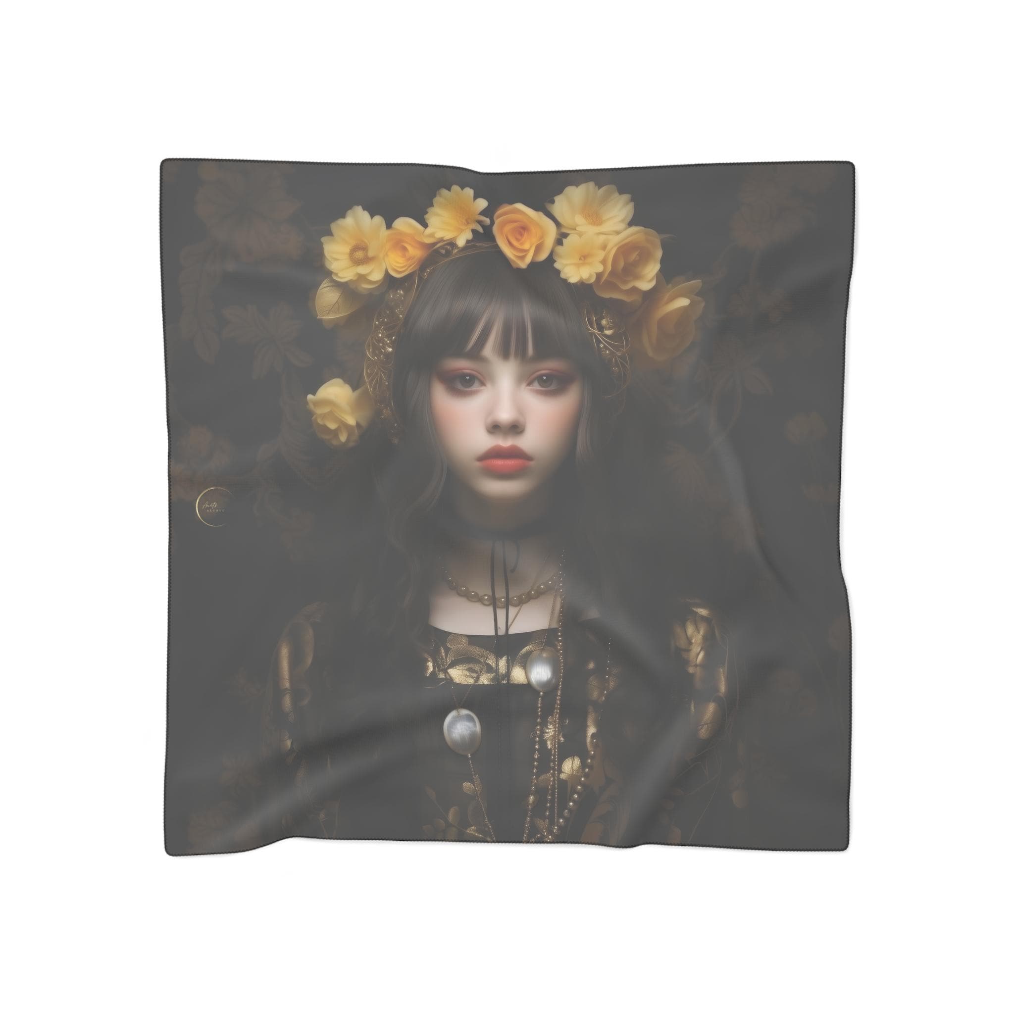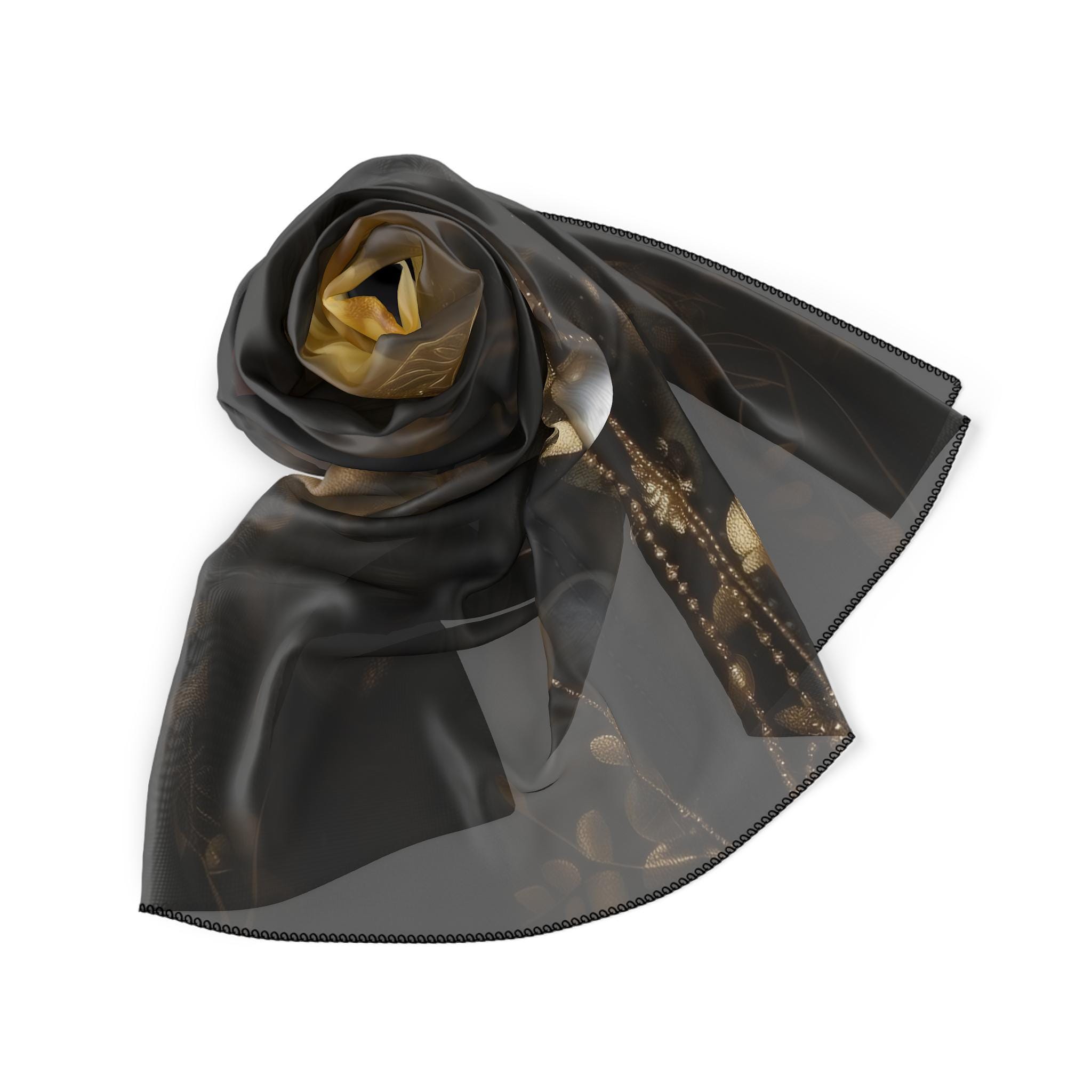 Lylith's Scarf, a sheer chiffon scarf adorned with a floral art print. Step into a world of elegance, mystery and beauty. A distinctive accessory designed to elevate any outfit. Made from high quality poly chiffon, this sheer scarf is extremely light and airy. The vibrant, high definition print transforms it into a truly eye catching statement piece.